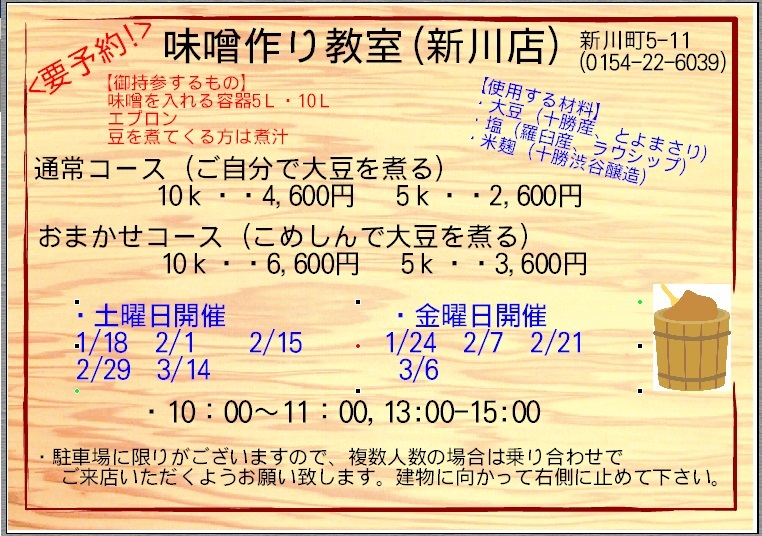 2019/12/04 2020年 味噌教室 新川店日程が決まりました。